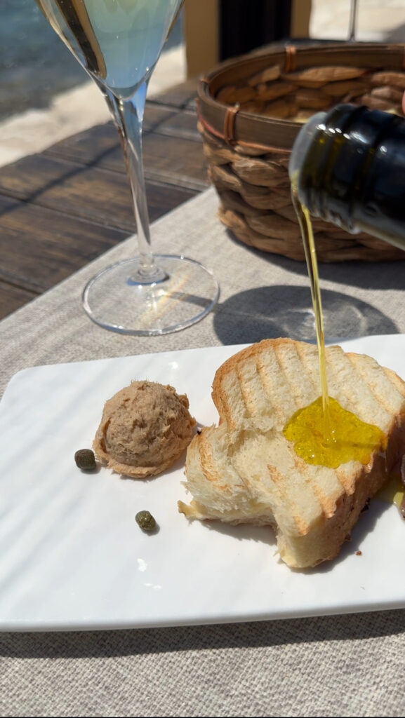 Chleb, wypiekany według tradycyjnych receptur, jest podawany z lokalną oliwą z oliwek, która charakteryzuje się intensywnym smakiem i aromatem. Dodatek pasty z tuńczyka jest doskonałą kropką nad ,,i”.