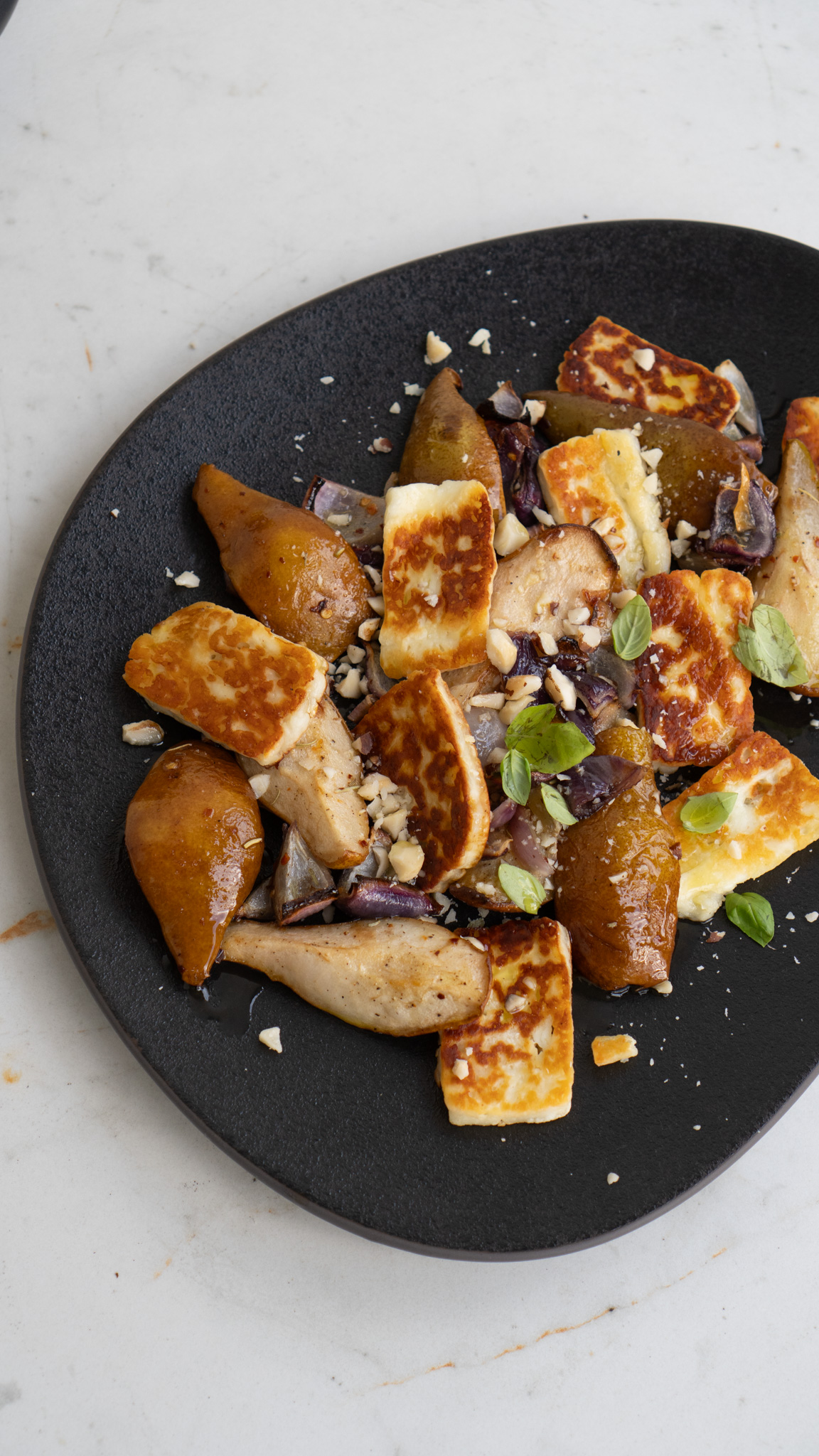 Sałatka z gruszką i chrupiącym halloumi to połączenie słodyczy i lekkiej słoności, które uwielbiam – zawsze robi wrażenie na stole i smakuje wyjątkowo.