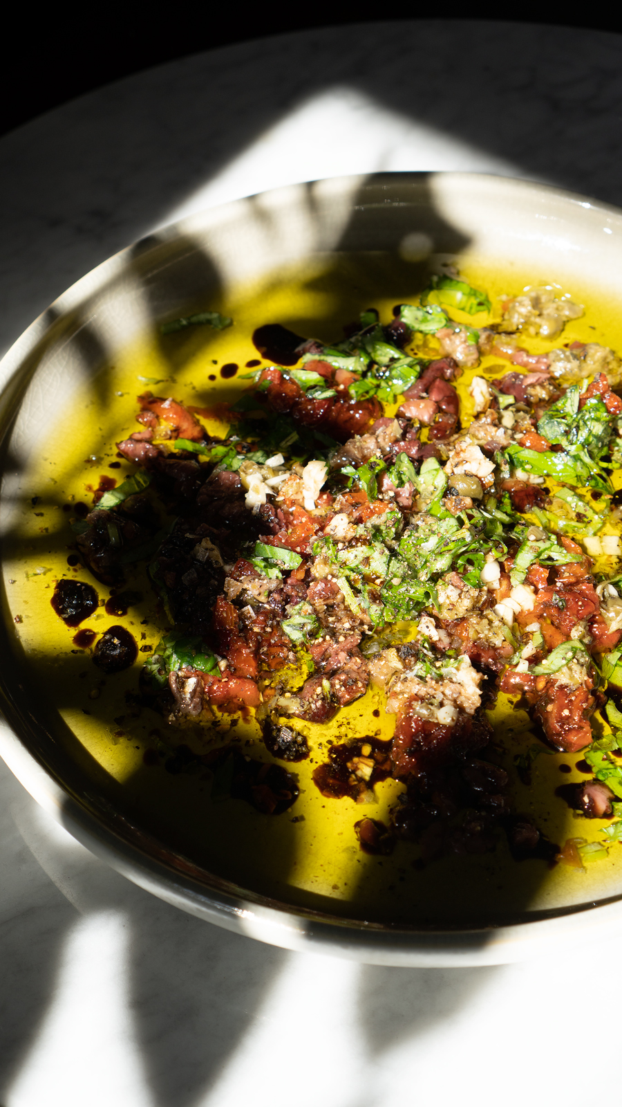 Dlatego w tym zestawieniu jest między innymi smakowa oliwa – absolutny hit. To taka przekąska, którą robimy totalnie pod siebie. Suszone pomidory, kapary, anchois, czosnek, chilli… co nam w duszy zagra. Kilka dodatków, dobra oliwa, chrupiący chleb i już jest coś, co znika szybciej, niż się wydaje.