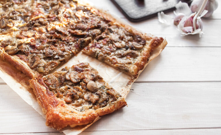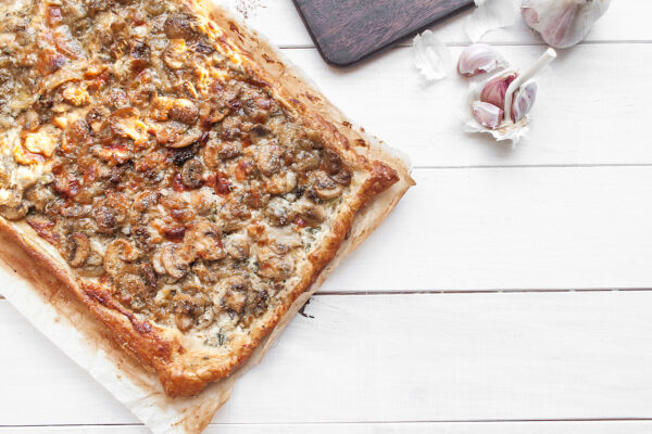 6. Tarta na cieście francuskim z grzybami i karmelizowaną cebulą
