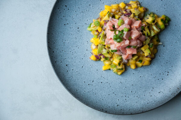 12. Ceviche z łososia z salsą z mango i awokado