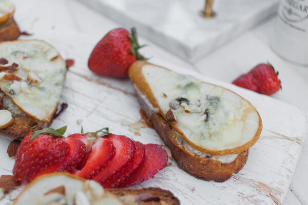 9. Bruschetta z gruszką, gorgonzolą, miodem i orzechami