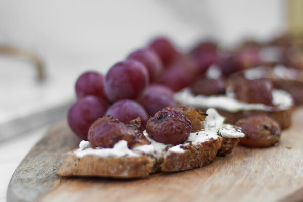 13. Chrupiąca bruschetta z kozim serem i winogronami