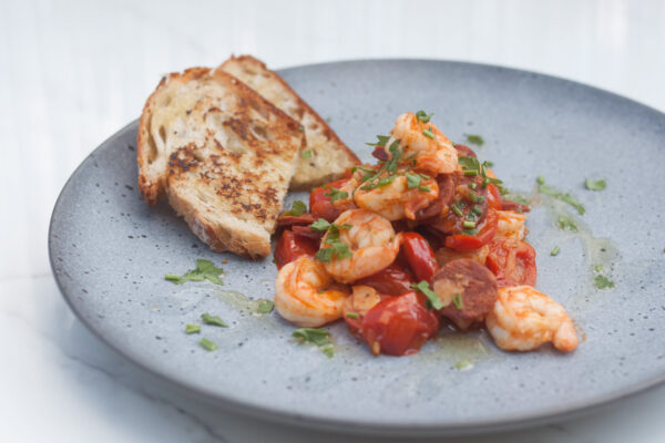 Krewetki z chorizo i pomidorkami koktajlowymi to połączenie, które uwielbiam – intensywne, aromatyczne i totalnie wciągające. Jeśli jeszcze nie próbowaliście, zdecydowanie polecam, można podawać z bagietką do maczania w sosie albo wymieszać z makaronem i stworzyć coś naprawdę wyjątkowego.