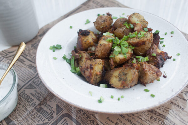 Chrupiące z zewnątrz i miękkie w środku pieczone ziemniaki to dowód na to, że czasem najprostsze rzeczy są najlepsze. Dodajcie do nich ciekawy dip i jestem pewna, że znikną ze stołu w mgnieniu oka!