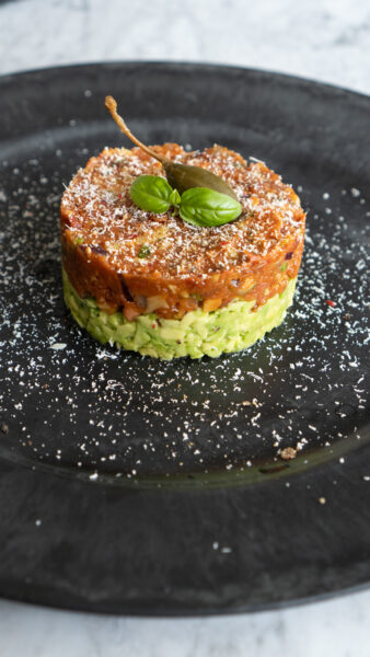 Wegański tatar potrójnie pomidorowy to niezwykle zaskakująca przekąska, ma strukturę mięsa i bogaty, dobrze zbalansowany smak, który polubi nawet największy mięsożerca. Doprawiony w sposób zaskakująco trafiony, naprawdę potrafi pozytywnie zaskoczyć – musicie spróbować sami!