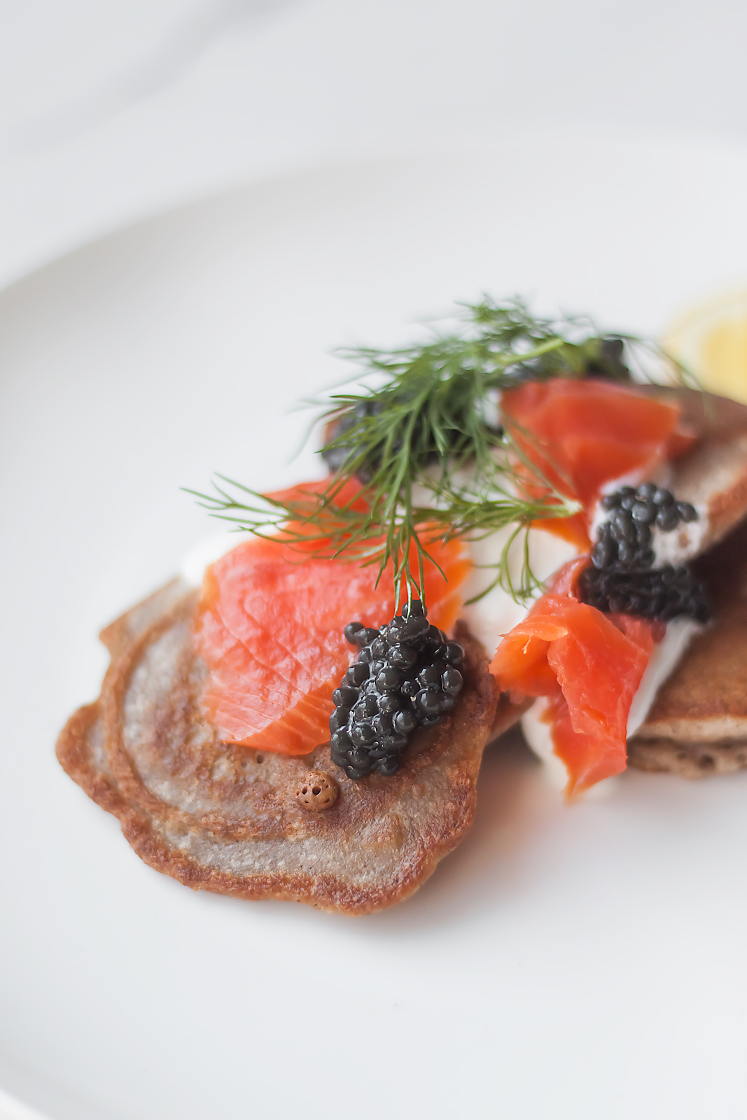 14. Rosyjskie bliny gryczane z kwaśną śmietanką, kawiorem i łososiem – kliknij po przepis
