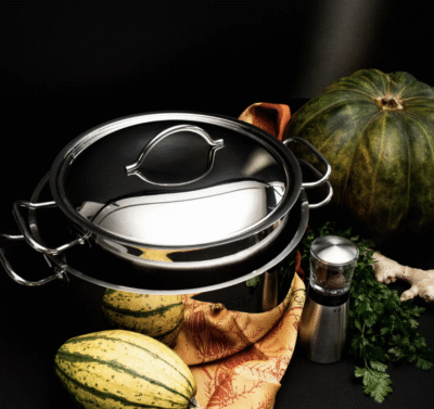 Garnek z pokrywą AFFINITY marki de Buyer to kwintesencja precyzji, kontroli i elegancji w nowoczesnej kuchni. Zaprojektowany dla profesjonalistów i wymagających domowych kucharzy, łączy zaawansowaną technologię wykonania z ponadczasowym designem.