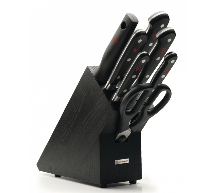 Blok noży WÜSTHOF CLASSIC z 7 elementami to kompletny zestaw stworzony z myślą o codziennym gotowaniu na najwyższym poziomie. Połączenie ponadczasowego designu, doskonałego wyważenia i legendarnej niemieckiej jakości sprawia, że jest to wybór zarówno dla domowych pasjonatów kuchni, jak i profesjonalnych kucharzy.