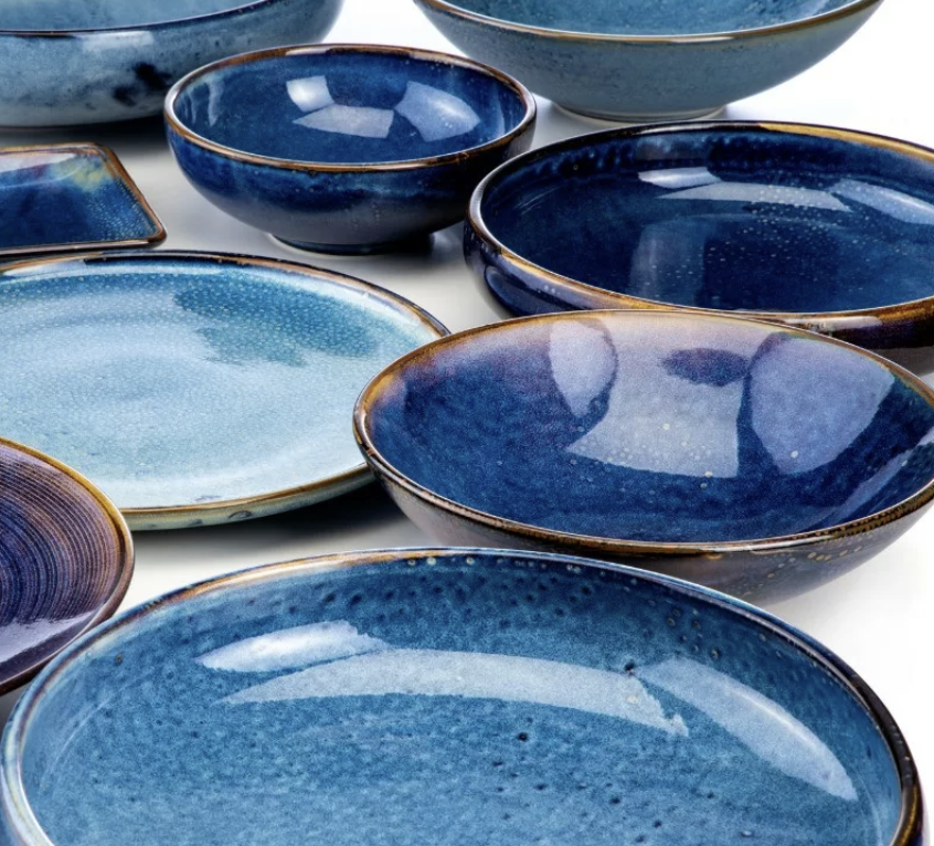 Dwudziestoelementowy zestaw porcelany w modnych odcieniach niebieskiego, który zdobył ogromną popularność wśród entuzjastów nietuzinkowego wystroju wnętrz.