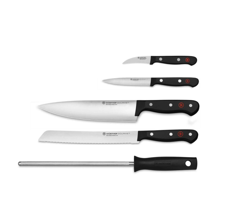 Blok noży WÜSTHOF GOURMET z 5 elementami to praktyczny i uniwersalny zestaw zaprojektowany z myślą o codziennym gotowaniu. Łączy niemiecką jakość wykonania z nowoczesną technologią oraz komfortem użytkowania, dzięki czemu doskonale sprawdzi się jako pierwszy profesjonalny zestaw noży, zarówno do kuchni domowej, jak i półprofesjonalnej.