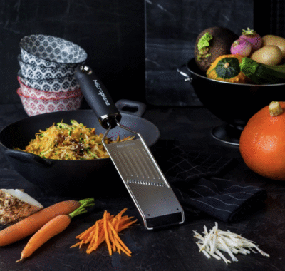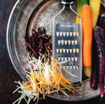 Doskonałość w każdym calu – tarka Microplane, to niezwykle precyzyjne połączenie stali nierdzewnej i tworzywa sztucznego. Dzięki zaawansowanej technologii, ostrza tarki są niebywale trwałe i nadzwyczaj ostre. Tarka trze parmezan i inne twarde, dojrzewające sery na puch. Genialnie sprawdza się także do cytrusów, imbiru oraz czosnku. Każdy, kto choć trochę gotuje powinien się w nią zaopatrzyć. Bez wątpienia jest to jeden z moich ulubionych sprzętów w kuchni z którego korzystam najczęściej.