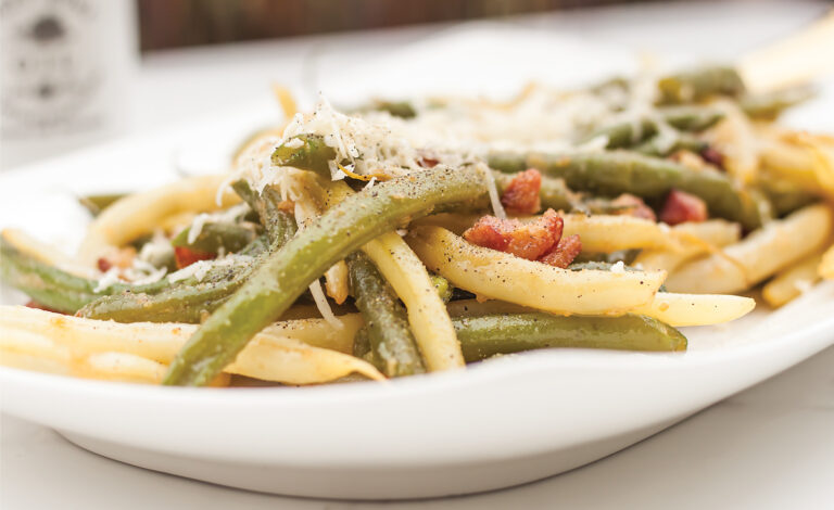 Następnie dodaj ostudzone, grubo pokrojone szparagi i polej wszystko wcześniej przygotowanym dressingiem. Dobrze wymieszaj sałatę i nałóż na głęboki talerz.